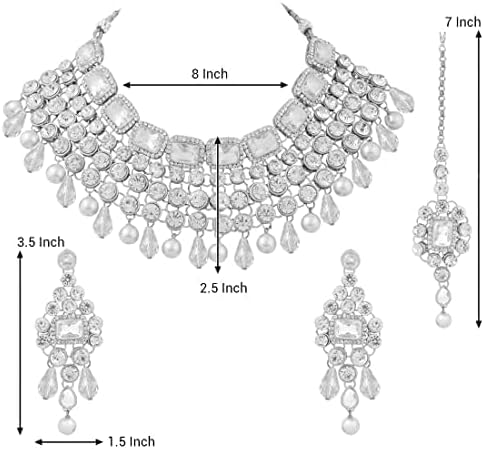 - Product Dimension :Neck piece – Length – 8 inch x Width – 2.5 inch; Earrings - Height – 3.5 inch x Width - 1.5 inch; Tikka – 7 inch