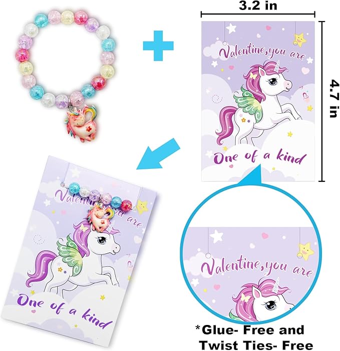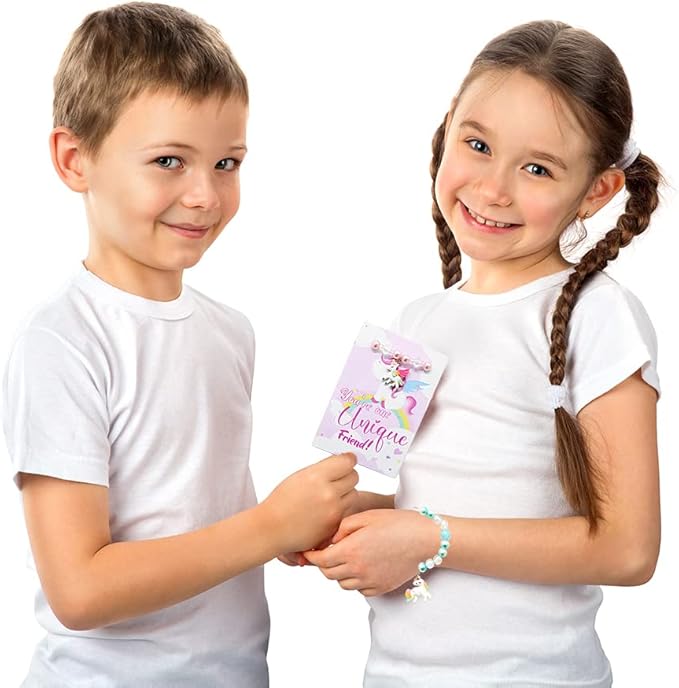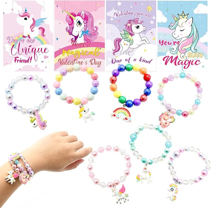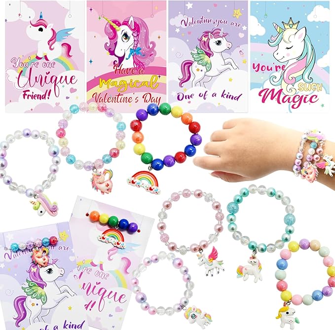 - IDEAL GIFT: Kids Valentine's Day Cards and Unicorn Bracelets are suitable for Kids Classroom Exchange Party Favors, Birthday Giveaways, Game Prizes.