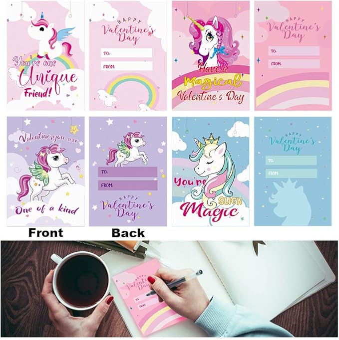 - SUPER VALUE SET: Valentine's Greeting Cards with Unicorn Bracelets giveaway item including 28 pieces of gift cards in 7 unique designs plus 28 cute unicorn bracelets (7 styles).