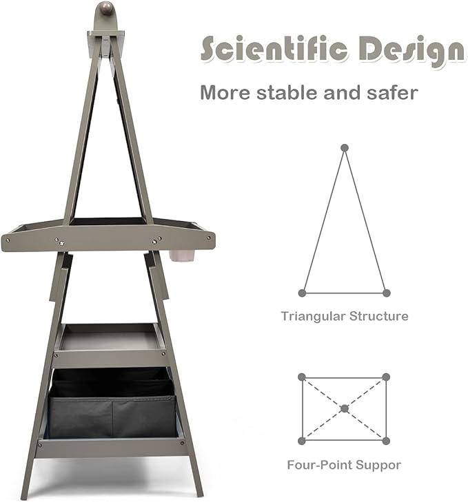 - Sturdy MDF & Round Corners: Made of premium MDF material, this art easel is sturdy for long-term use. Humanized round corners can effectively protect children from scratches. Besides, the easel is designed with triangle structure to ensure its good stability.