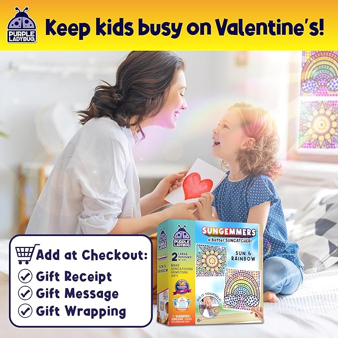 - MESS-FREE SUNCATCHER KIT FOR KIDS! No need to worry about clean-up—these easy-to-create gem art kits keep kids entertained while making dazzling window art. Spark your child's imagination with Purple Ladybug's SunGemmers! Ideal for kids ages 6 & up!