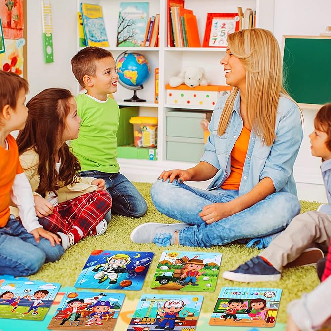 - 12 STYLES TRANSPORTATION JIGSAW: You will receive 12 pack characters jigsaw puzzles and 12pcs orange storage bag, including pirates, scientists, hosts, engineers, farmers, firemen, students, doctors, couriers, waiters, astronauts and footballers, which are party favors toys for kids