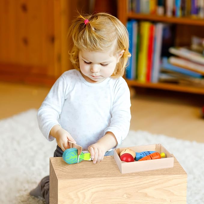 - 😸[PREMIUM QUALITY] Made of the highest quality basswood, ensure durable, non-toxic, safe, and crush-resistant. Adorable and realistic, kids-friendly cutting vegetables set to enchant even the very young toddlers. Christmas gifts toys kids toys toddler toys