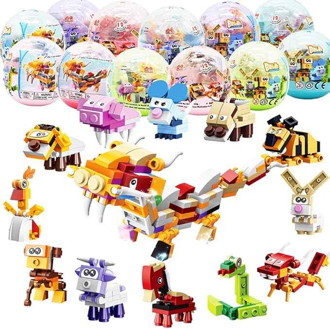- ✅CREATIVE STEM TOY: Each surprise toy egg with step-by-step assembly instruction, so that kids can assmble easily. 12 styles of animals comes with different colors and design, kids can build their color shape cognition, develop their patience and hands-on ability, lots of fun.