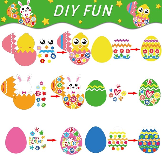 - 【Enjoy DIY Fun】Play Easter egg DIY craft kits activities can stimulate kids’ creativity, imagination, allow them to learn something while enjoying handicrafts fun. Just do these Easter egg DIY craft kits with your kids or students, and enjoy your happy Easter time and enhance your relationship.