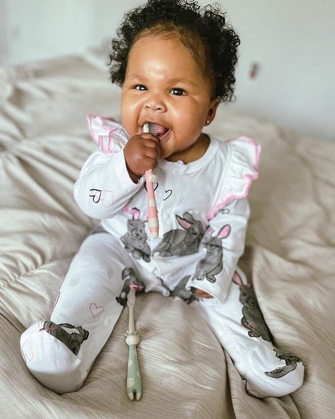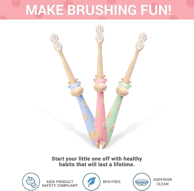 ROARex® All-Natural Eco Friendly Kids Toothbrush Made from Plants - Giraffe 4-36m - Baby to Toddler - Rose/Mint - 4pk | 1% for The Planet Product