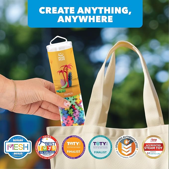 PLUS PLUS 240 Piece Interlocking Building Blocks for Kids, Open Ended Connecting Toys, STEM Bin Classroom Mini Manipulatives - Tropical Mix Play Tube