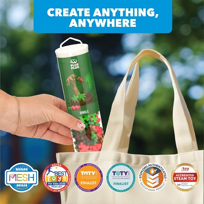 PLUS PLUS 240 Piece Interlocking Building Blocks for Kids, Open Ended Connecting Toys, STEM Bin Classroom Mini Manipulatives - Jungle Mix Play Tube