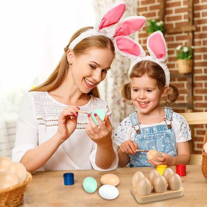 • 【Realistic Looking & Safe to Use】:The fake Christmas eggs with realistic color and wooden holder are all made of solid wood, so it will be durable for long-time using and parents don't need to worry about any safety problem.