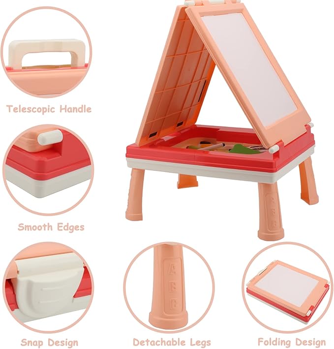 - Quality PP Material: The educational drawing easel for kids is made of high quality non toxic and tasteless ABS plastic. Compare to the ordinary wooden drawing boards it is more exquisite. With the arc-shaped corners design the kids easel drawing board can help to prevent children from being injured, full of safety