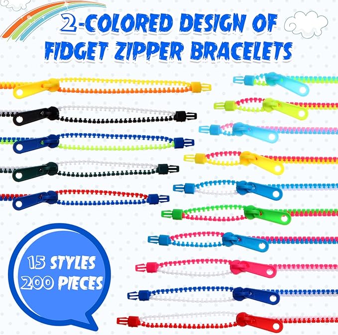 - Value Package: 200 pieces zipper bracelets of sufficient quantity can meet the needs of entertaining little people when holding a birthday party or friendship day classroom exchange; Every zipper bracelet measures 20 cm/ 7.9 inch, which is long enough even for adults