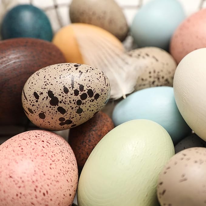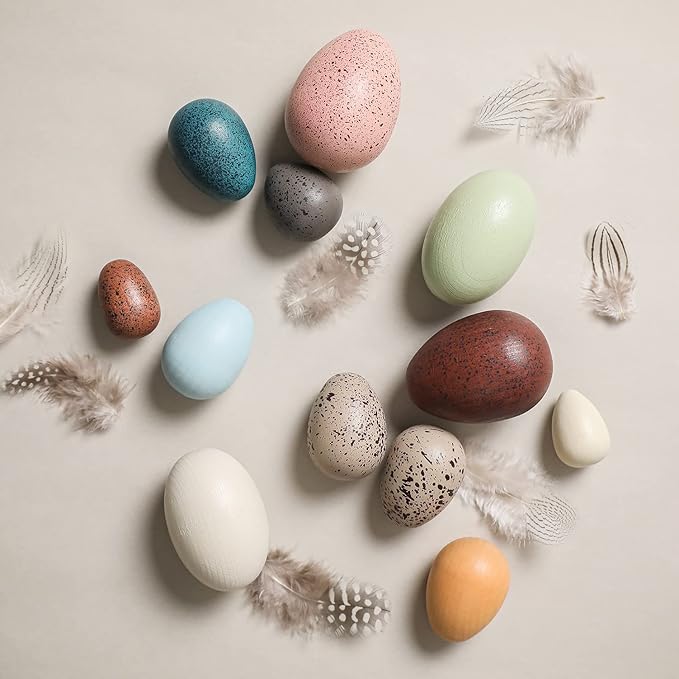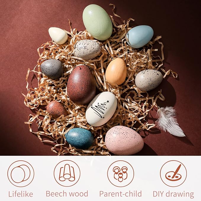 Youuys Wooden Easter Eggs Toys for Kids, Faux Easter Speckled Eggs DIY Art for Craft for Home Garden Decors, Cognitive Montessori Toy for Species Identification Early Educational Preschool Classroom