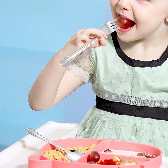 • Ergonomic design, right size ideal for little hand and mouth, kids forks are sharp enough to stab food easily but wouldn’t hurt children’s mouth, baby spoons are deep enough to hold a good amount of soup
