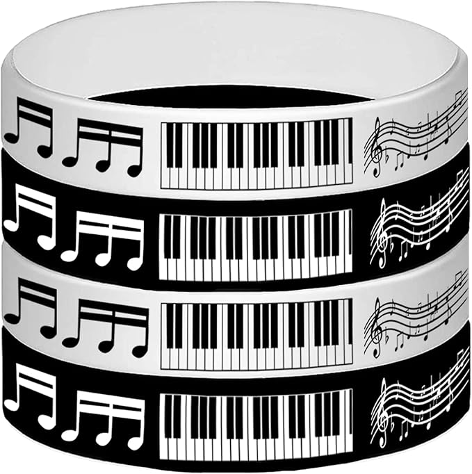 - Piano Notes Silicone Bracelets Set:24 pieces of piano notes themed rubber bracelets with 2 different colors, black and white.