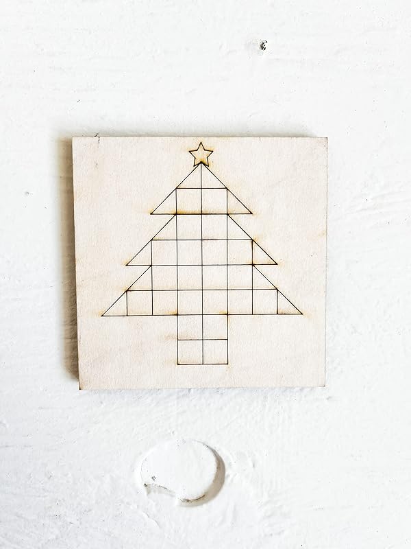 Unfinished Barn Quilt Square Wooden Sign, Country Decor Canvas Quilts Blocks (6 inches, Christmas Tree)