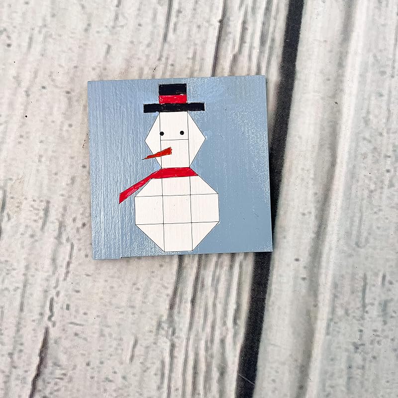 Unfinished Barn Quilt Square Wooden Sign, Country Decor Canvas Quilts Blocks (15 inches, Snowman)