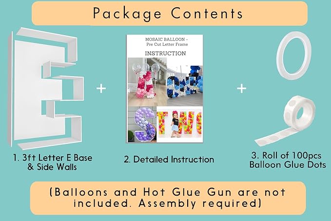 - STABLE, RELIABLE DECOR - Spend more time celebrating with family and less time fixing your decor. These mosaic letter balloon frames come with a flat bottom base made of sturdy foam board, so you don't have to worry about them toppling over.