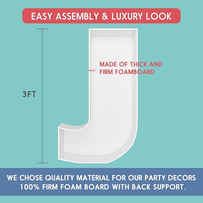 3FT Tall Mosaic Balloon Frame Letters Big Marquee Light Up Letters DIY Kit for Birthday Party Wedding Backdrop Decor Letter J Pre-Cut Foam Board