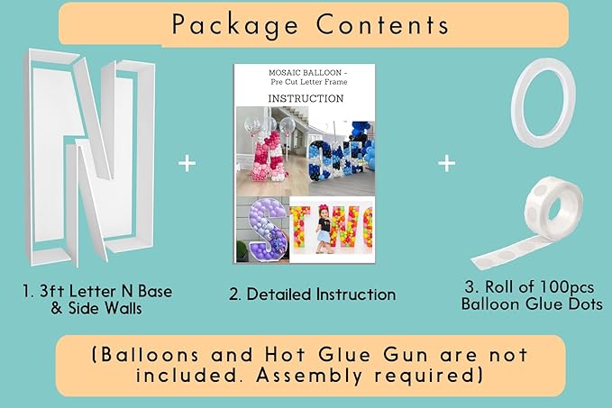 - FAST and EASY ASSEMBLY - Decorate your party like an event balloon artist! Our 3ft mosaic balloon letters are pre-cut to the perfect measurements, saving you the hassle of printing, measuring, and cutting templates yourself!