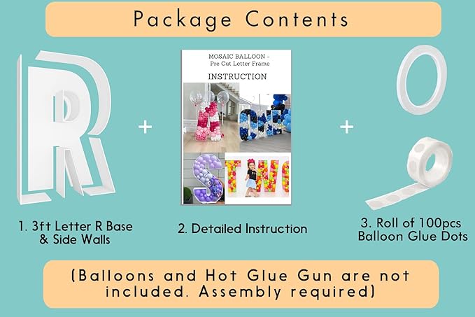- STABLE, RELIABLE DECOR - Spend more time celebrating with family and less time fixing your decor. These mosaic letter balloon frames come with a flat bottom base made of sturdy foam board, so you don't have to worry about them toppling over.