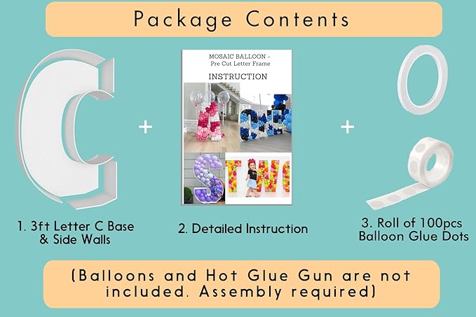- FAST and EASY ASSEMBLY - Decorate your party like an event balloon artist! Our 3ft mosaic balloon letters are pre-cut to the perfect measurements, saving you the hassle of printing, measuring, and cutting templates yourself!