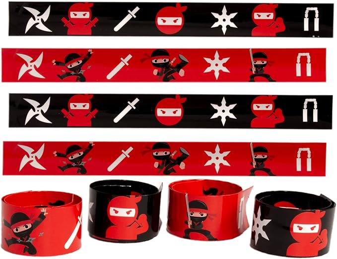 - This ninja decorations for party set also includes 12 slap bracelets and 12 stretchy slingshot ninja toys.
