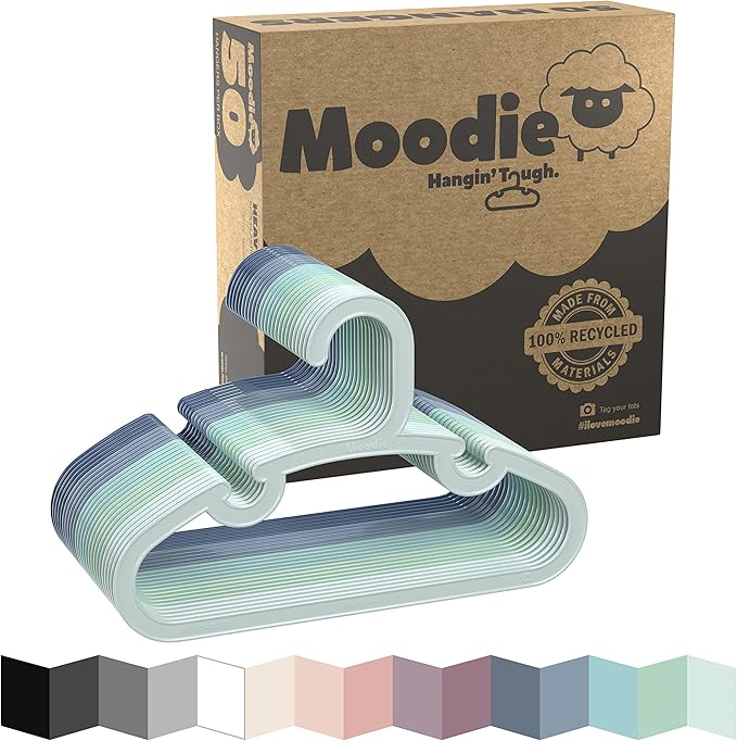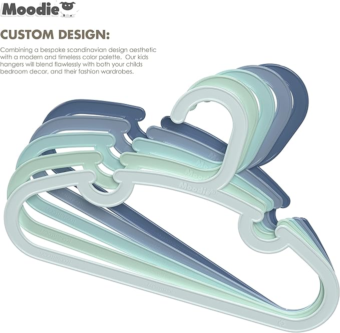 - 🎨 Stylish Scandinavian Design: Add a touch of Scandinavian flair to your child's closet with our bespoke color options. Choose from bright white, pink sunset multi, or blue ocean ombre to match your child's style and personality. With both functionality and style, our Moodie medium childrens hangers for clothes are the perfect addition to any small wardrobe.