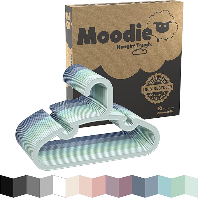 - 🎨 Stylish Scandinavian Design: Add a touch of Scandinavian flair to your child's closet with our bespoke color options. Choose from bright white, pink sunset multi, or blue ocean ombre to match your child's style and personality. With both functionality and style, our Moodie medium childrens hangers for clothes are the perfect addition to any small wardrobe..