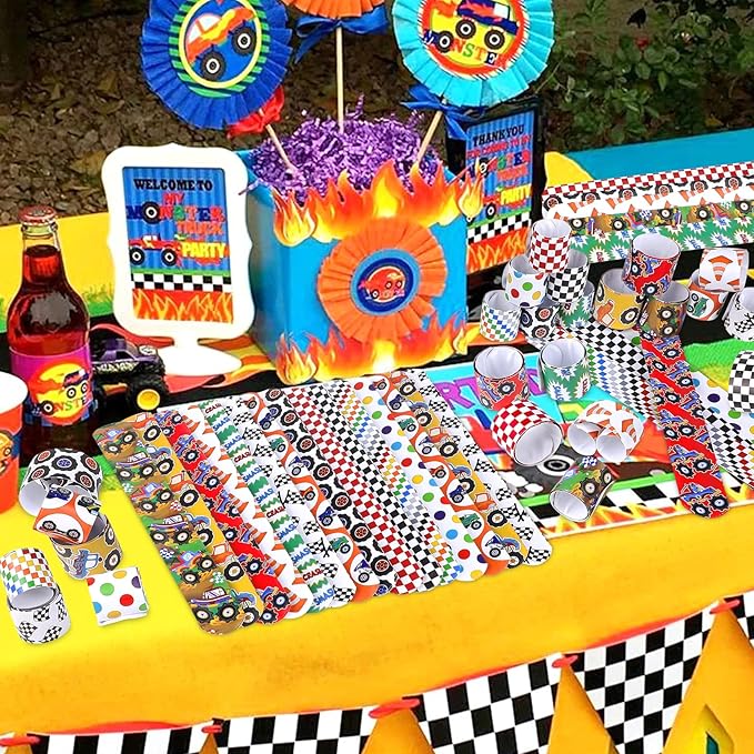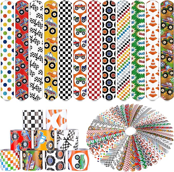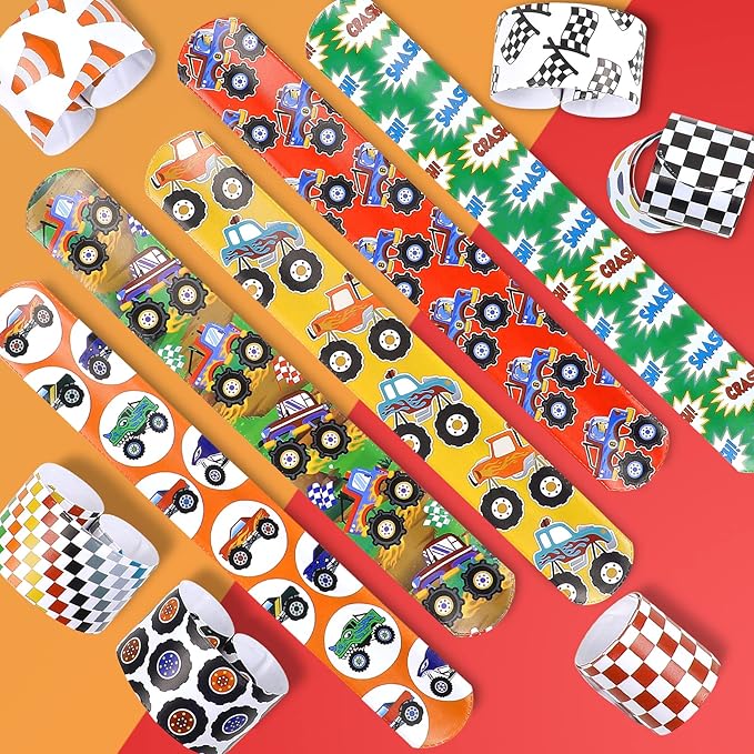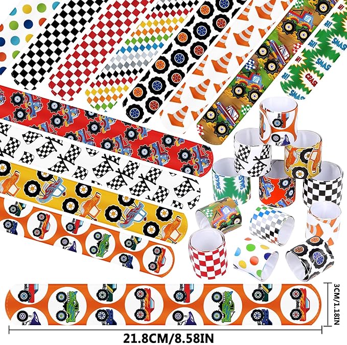 Sawowkuya 48PCS Monster Trucks Themed Party Favors Slap Bracelets, Kids Adults Classroom Prize Exchanging Gifts Birthday Party Decorations Supplies