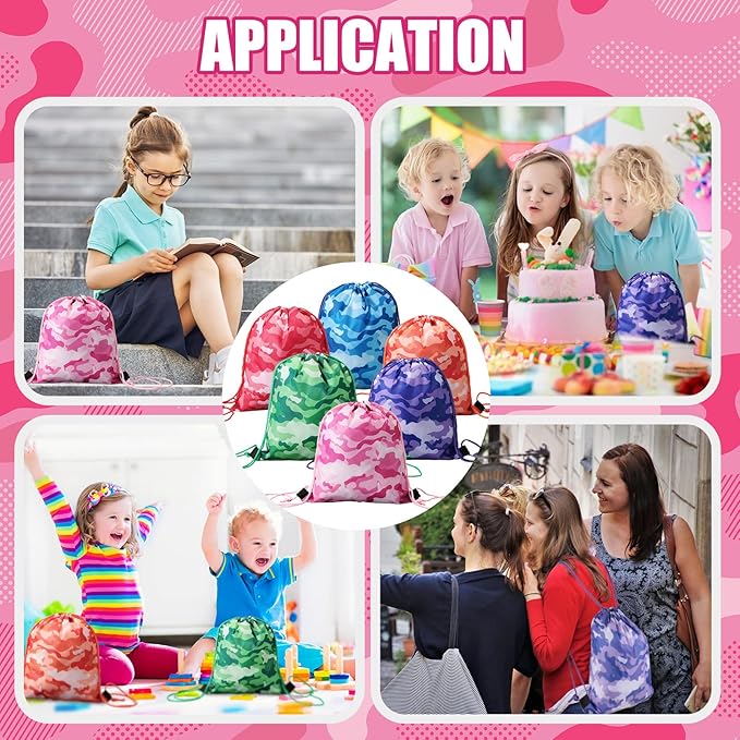 - Waterproof and Reliable: each colorful camouflage drawstring backbag measures about 12 x 10 inches, made of quality 210D oxford cloth, serviceable, waterproof and tear resistant, not easy to fade, and you can fold for storage for next time use, easy to carry, suitable for parties and everyday use