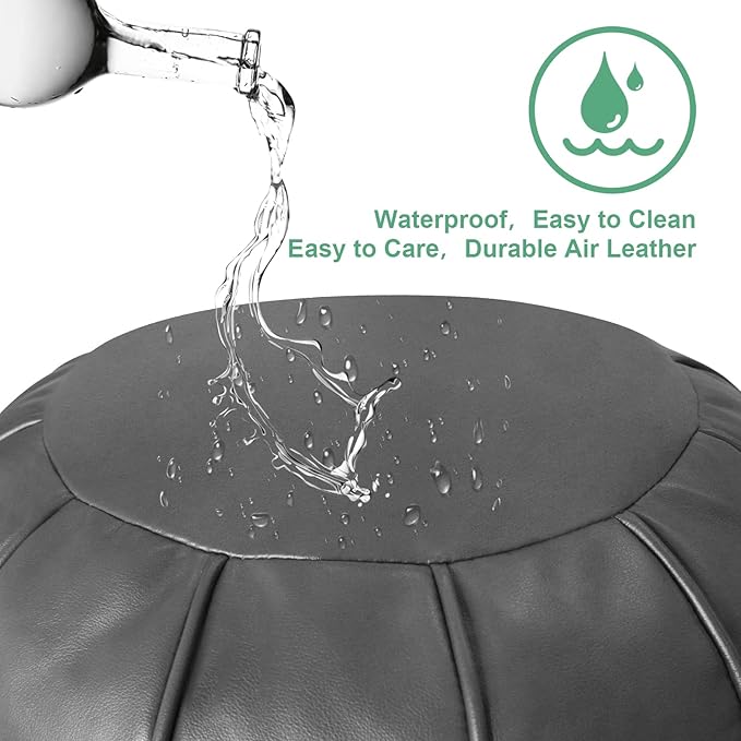 Louis Donné Unstuffed Pouf Ottoman,Faux Leather Ottoman Pouf Cover, Supersoft Handmade Moroccan Decor, Storage Solution, Foot Rest, Footstool, Pouffe for Balcony Office Indoor 21dia Grey