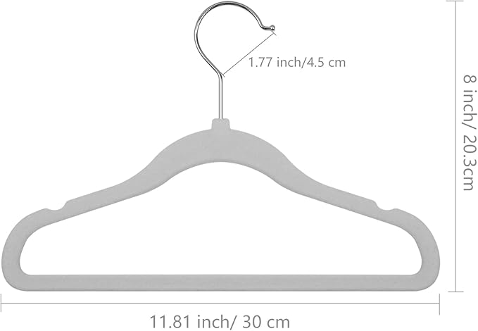 - 5. Excellent dimension with standard hook sized: 1.77". Baby velvet hangers for nursery is 11.81" x 8" approx, ideal for clothes size from newborn kids clothing all the way to toddlers.