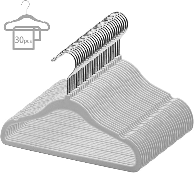 GoodtoU Kids Velvet Hangers,30 Pack Baby Hangers for Closet Non Slip Velvet Clothes Hangers Coat Hangers for Toddler Children Infant Hanger (Light Grey 30Pack)