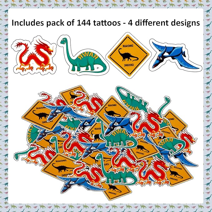 - This set also includes 144 temporary kid friendly dragon and dinosaur tattoos!