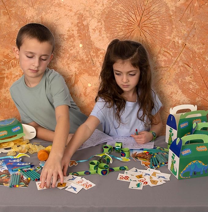Tigerdoe Dinosaur Party Favor Set – Dragon Birthday Party Decorations - Dino Party Supplies – Dragon Party Favor Boxes - Coloring Books, Crayons, Slap Bracelets, tattoos