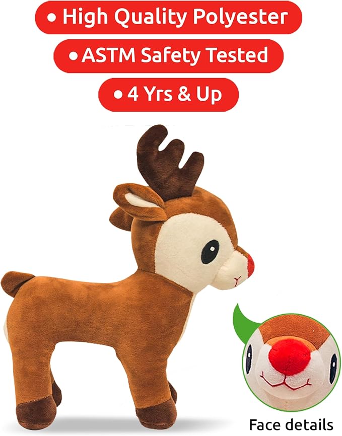 - Safety First: Our stuffed reindeer is tested by US verified third party laboratories. Designed for kids 4 and up. Made of soft polyester. Our plushies make the best kids Christmas gifts.