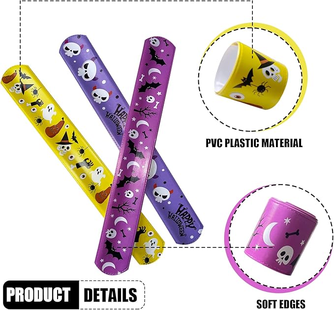 - Size information:The size of each Halloween slap bracelet is 8.6 x 1.18 inches/21.8 x 3 cm,due to manual measurement, please allow minute size errors.