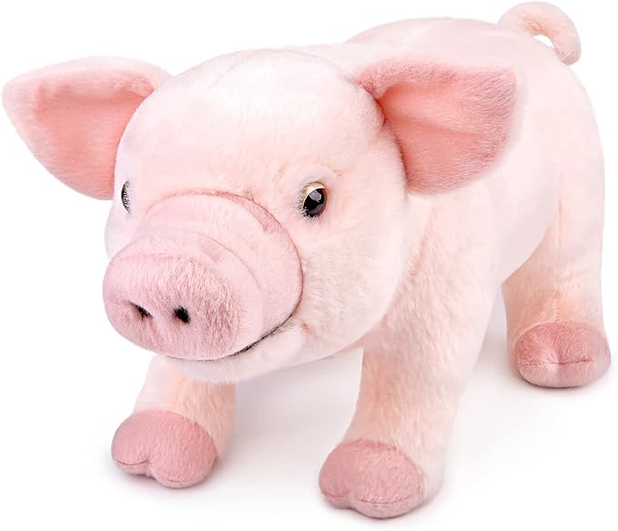 - REALISTIC PINK PIG PLUSH TOY: This is a lifelike pink pig toy, imitates real animals. The adorable face and squeezable body of our pink pig plush are made from premium cloth and filler. its the pink fur is smooth and soft, The light pink back stripe is transparent, standing design, the overall shape design is realistic, and the face design is unique, very realistic.