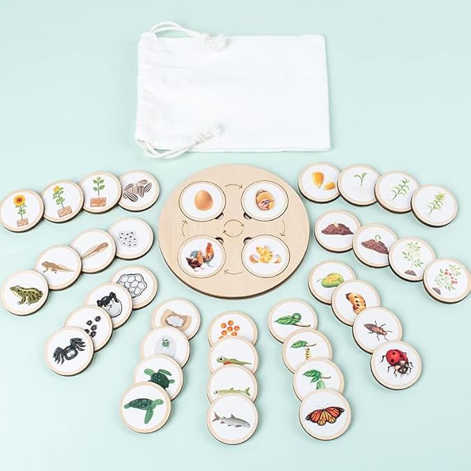 Wooden Life Cycle Toy Tray for Kids, Learning & Educational Toys Puzzles for Toddler, Montessori Homeschool Preschool Science Learning Activities Toys for Age 3 4 5 6 7 8+