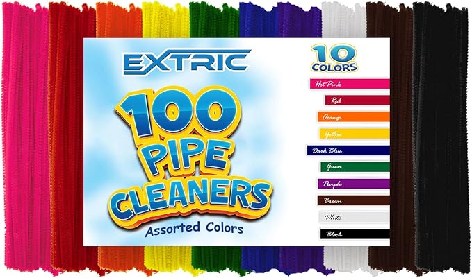 Pipe Cleaners Craft - 100 Pcs Multi-Colored Chenille Stems, 6mm x 6 Inch Fuzzy Sticks, 10 Assorted Colors for DIY Arts and Craft Projects and Decorations