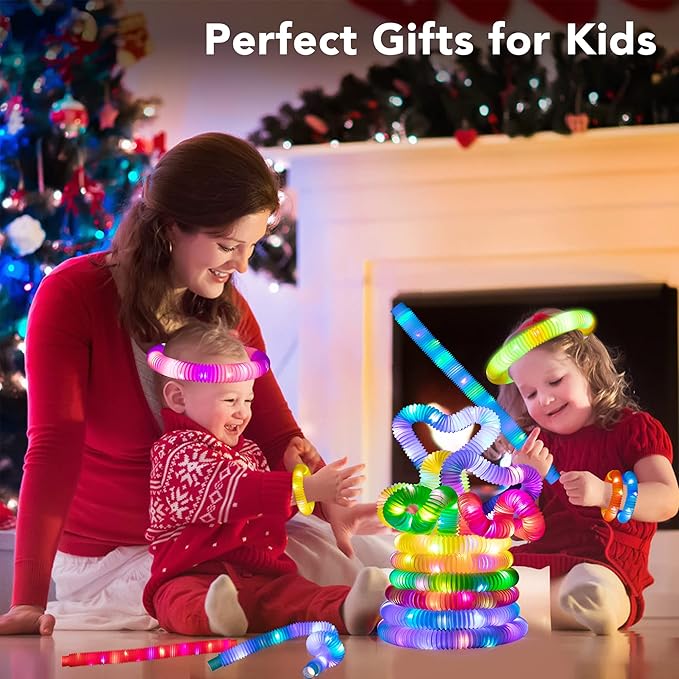 - High Quality & Safety: These light-up tube toys are made of premium plastic and can withstand a lot of stretching and twisting, lightweight, odorless, durable, no sharp edges ensuring that kids won't get scratched. Two ends are capped, inside lights can not easily be removed, safe for kids and toddlers.