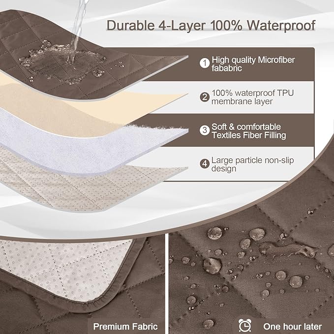 KinCam 100% Waterproof Recliner Chair Cover, Reclining Couch Covers for Pets, Dogs, Recliner Couch Slipcover Furniture Protector with Elastic Straps for Kids(23.6", Brown)