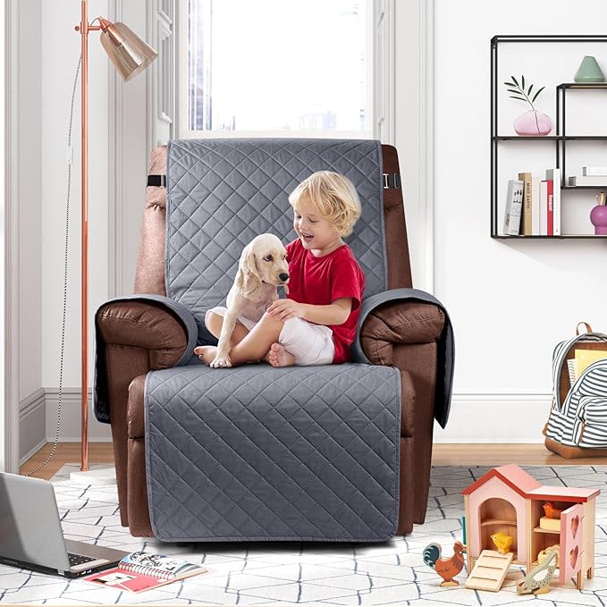 KinCam 100% Waterproof Recliner Chair Cover, Reclining Couch Covers for Pets, Dogs, Recliner Couch Slipcover Furniture Protector with Elastic Straps for Kids(23.6", Dark Gray)