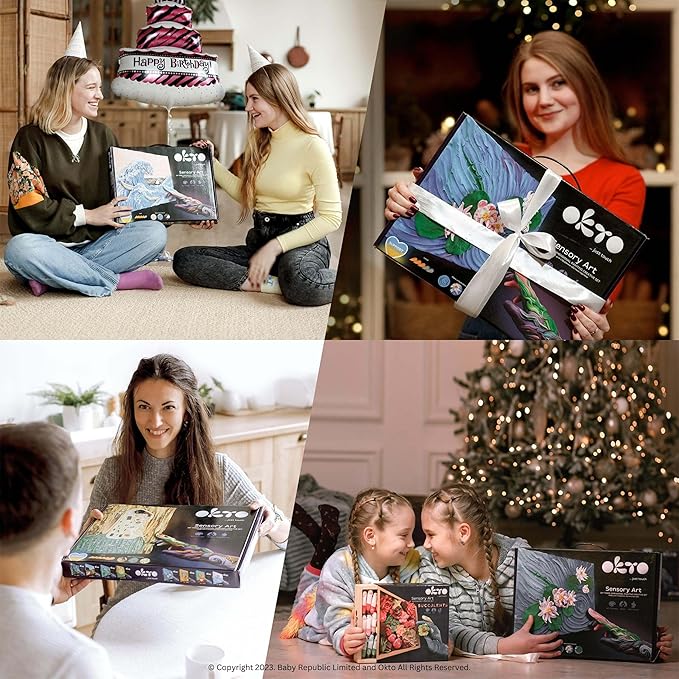 - DIY masterpiece: Create amazing "Starry Night" painting with OKTO modeling clay. The perfect art set for adults and kids who love to work with their hands! Awesome alternative for paint by number. Absolutely a new way to make unique paintings with light and super soft modeling clay. Also suitable for kids and teenagers to develop creativity and imagination.