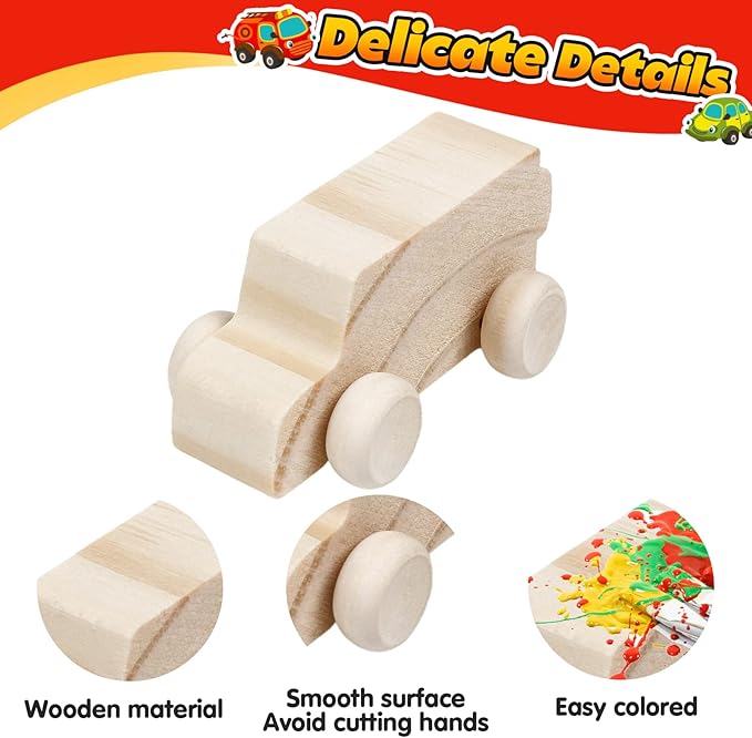 - Quality Material: These unfinished wood cars are made of quality wood, are smooth on the edge, and have no burrs, so you needn't worry about scratching. It is a good craft and painting kit for children, create your car with any color you want.