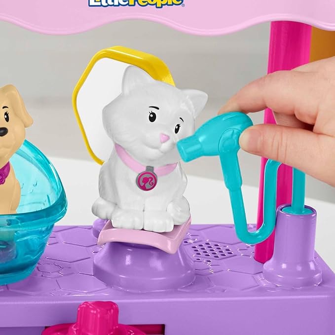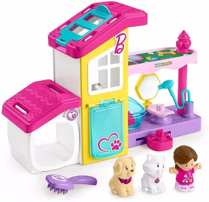 - Barbie-themed Little People pet care playset with 2 floors of play for toddler-friendly pretend play!