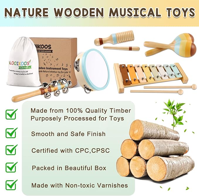 - 【Safe and Health Toys for toddlers】Our toddler musical instruments have obtained the CPC Certification, made by non-toxic and high quality material like wood to ensure safe and reliable for your girls or boys. They will have a happy time with such a great gift for hours! Note: For baby under 3 years old, please be accompanied by adults when playing.