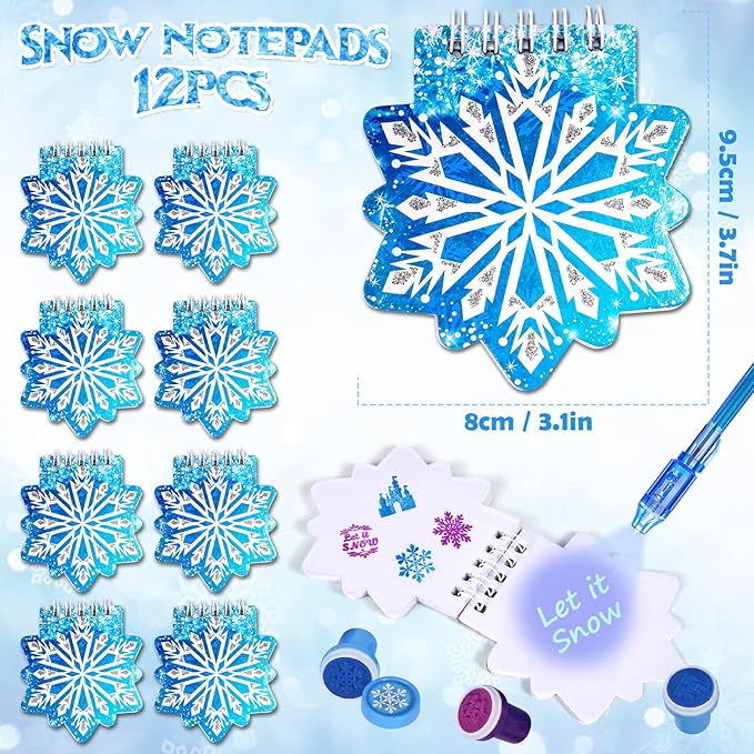 - Ideal Frozen Party Gifts: Our frozen party favors set comes in blue and purple, and most accessories feature snowflakes design. We especially added interesting invisible pens to better guard the little girl's secret. Not only does it make an ideal little gift, but it can also be paired with a frozen balloon garland kit. Ideal frozen party decorations, winter party favors for kids, snowflake party favors, winter wonderland party favors, winter themed party favors, frozen goodie bag stuffers