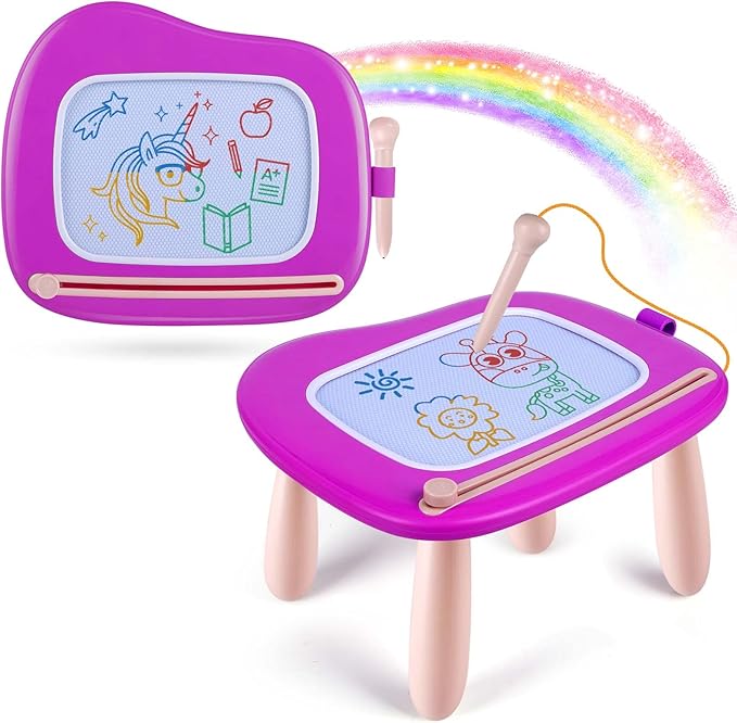 - 🎁Educational Toys For Toddlers: Draw, write and play games on this erasable sketch pad using the stylus to encourage your child’s creativity and help them to learn how to express themselves visually. Not just for art. Use magnetic drawing boards for math, number recognition, learning shapes, even does their homework.