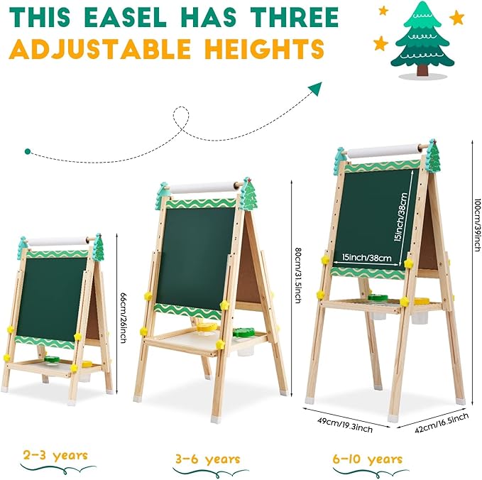 - 🎄Kids Safe Material: This children's art easel is made of high-quality logs, natural and environmentally friendly. It comes with non-slip feet, stable and safe for your child. Suitable for children over 3 years old.